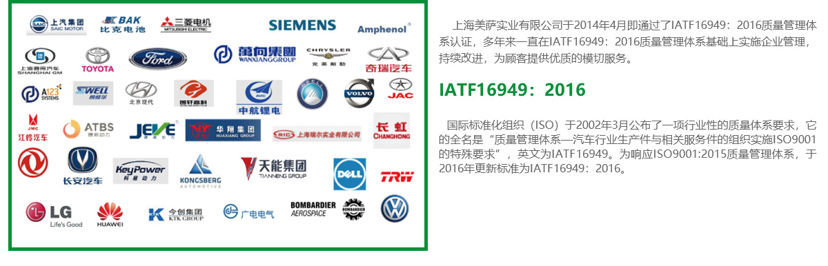 上海美萨实业有限公司(美萨实业)成立于2010年,是一家专注于新材料研发及加工服务的企业(主要包括:胶带精密模切;泡棉制品分切、模切加工;新能源锂电池密封缓冲、保温、导热、绝缘及防火材料的加工及研发等)。我们为您提供粘接、密封、隔热、导热及绝缘的全面解决方案,并服务于汽车、高铁、航空、电子、家电、建筑等广泛的工业领域。 美萨实业注册资金1008万元,使用面积6500平方米,员工人数约75人,经过多年不懈的努力,公司已经逐步发展成自主工艺设计、自主制造加工、销售、完善的售后服务为一体的加工型企业。 美萨实业依靠领先的技术、高效的管理团队和“基于品、始于心”.......